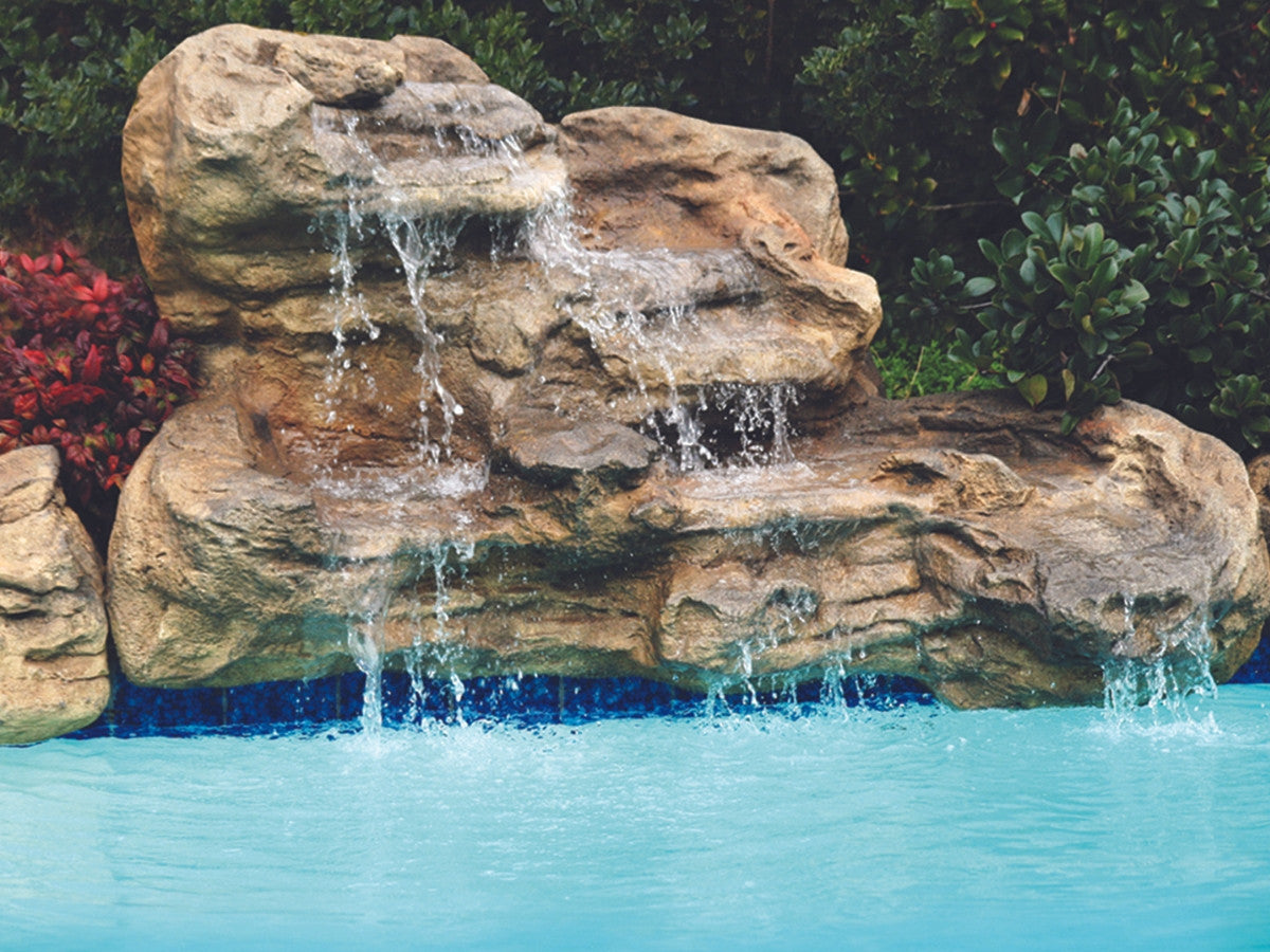 Molded from real sandstone rock formations in Sydney, Australia, it brings a touch of natural elegance and the rugged charm of the Australian landscape right to your poolside. This is the same waterfall as the original Serenity—strategically trimmed down to fit more compact spaces without sacrificing visual impact or water flow.